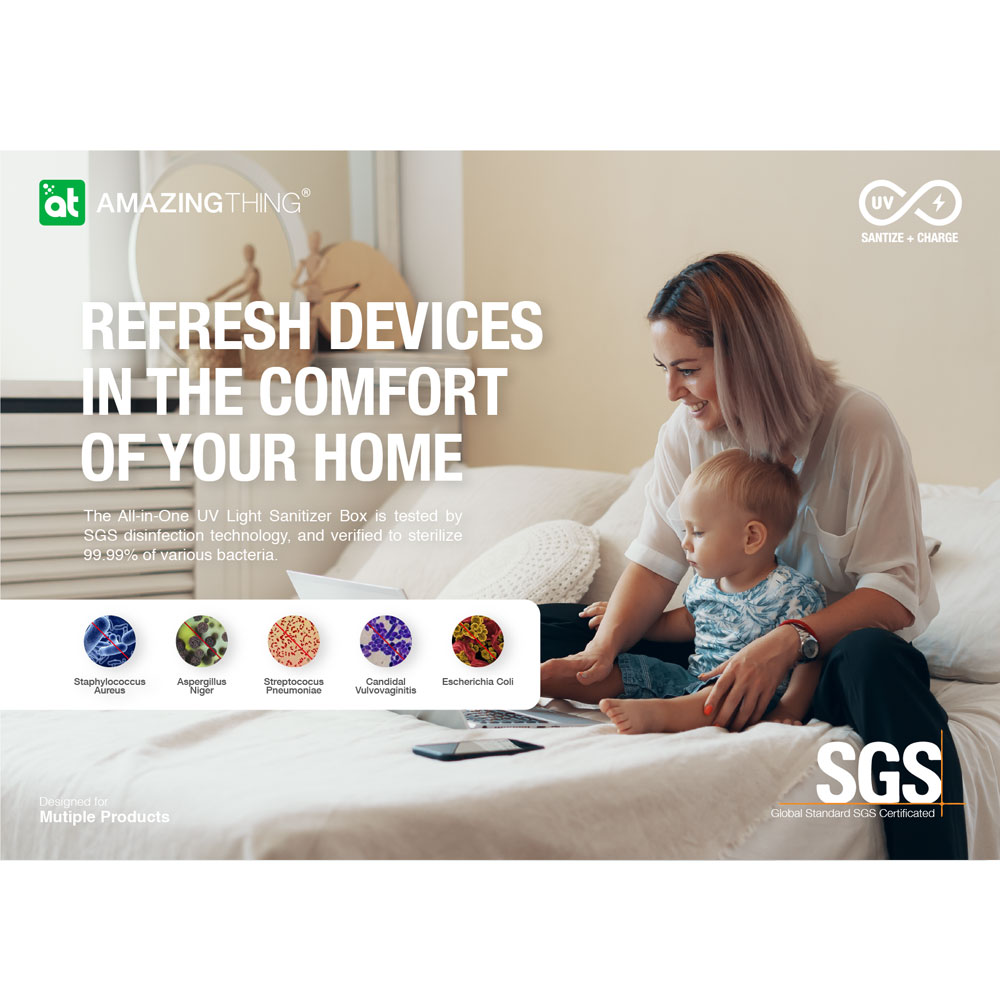- Included, UV Sanitizer Box with wireless charging, USBC to A Cable 100cm, user manual