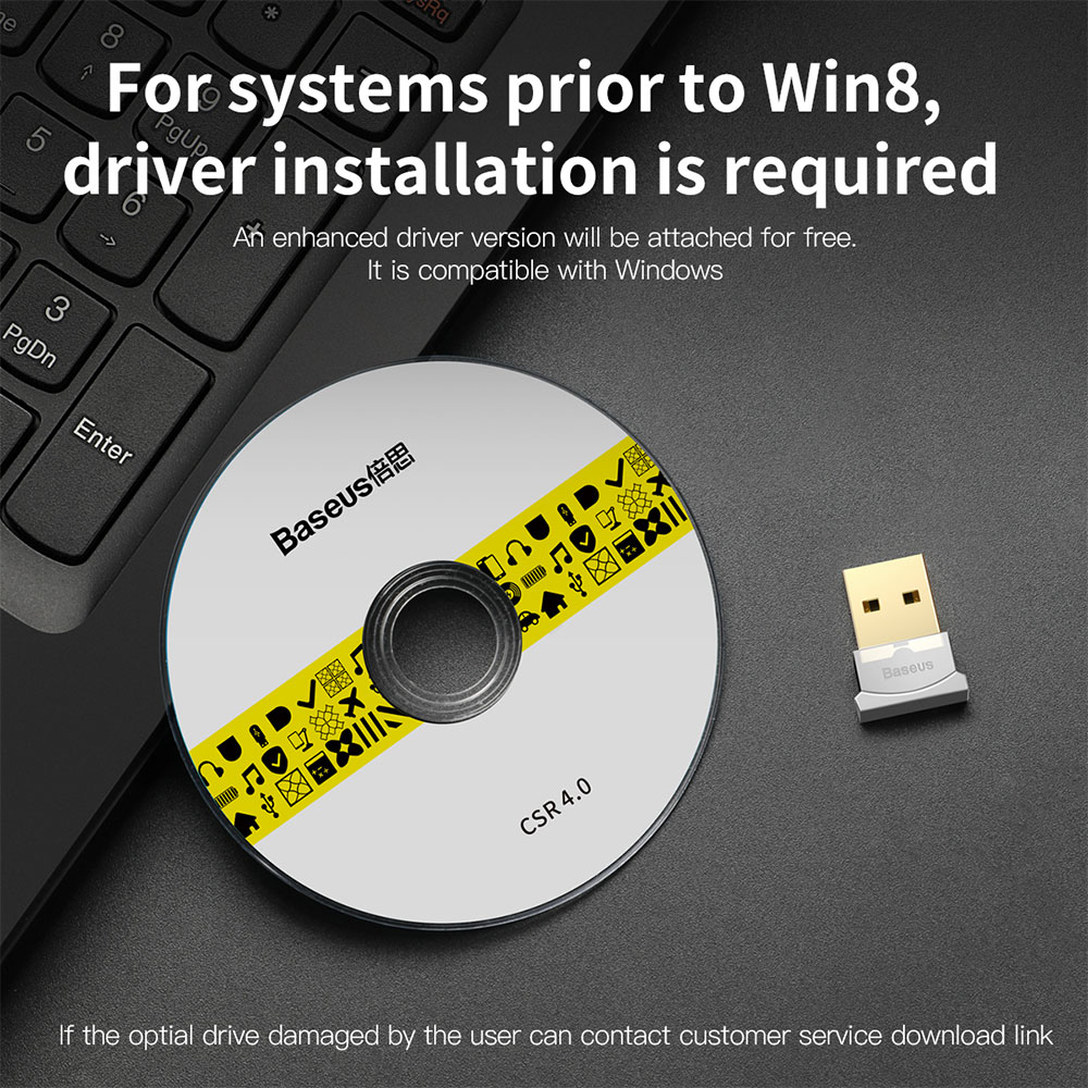 Baseus USB Bluetooth 4.0 Adapter External Bluetooth Adapter Compatible with Window for connect bluetooth headsets earphone speakers mouse keyboards mobile phones tablets gamepads (White)