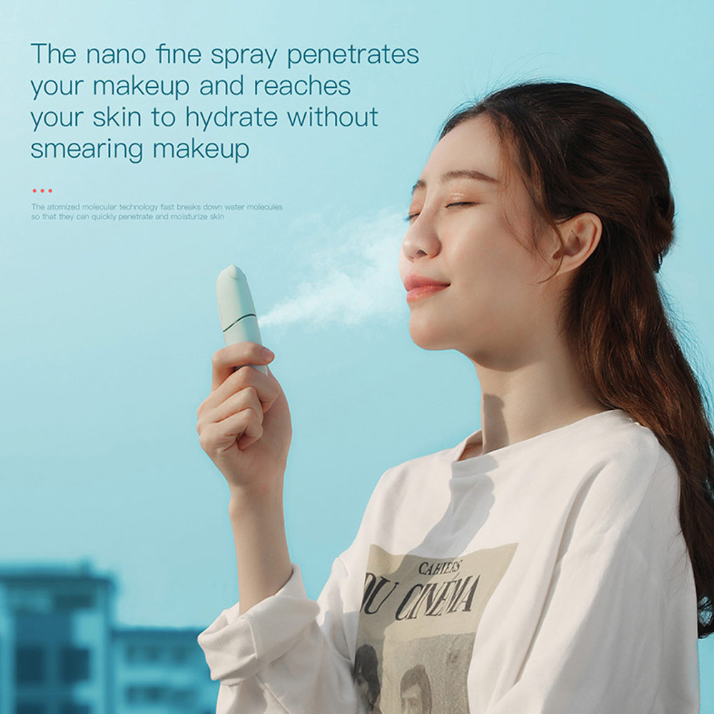 Rejuvenating Skin anywhere and anytime with Baseus Portable Moisturizing Sprayer. The nano fine spray penetrates your makeup and reaches your skin to hydrate without smearing makeup.
