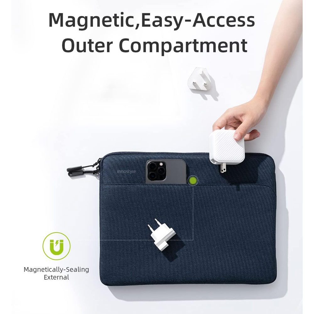 • Quick and Easy Access: The slim laptop sleeve with front pocket is designed to hold chargers, cables, mouse, external backup drives, and other essentials. With a magnetic-sealing closure, it is always within reach and convenience to use