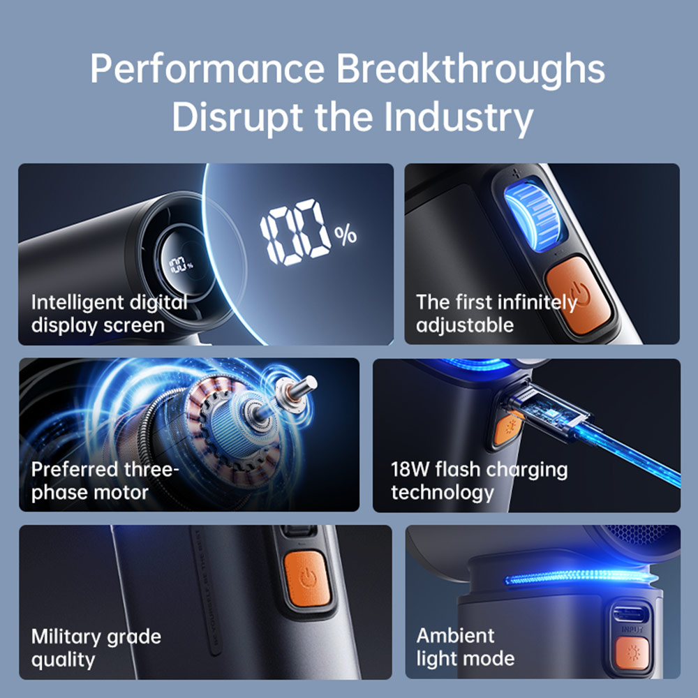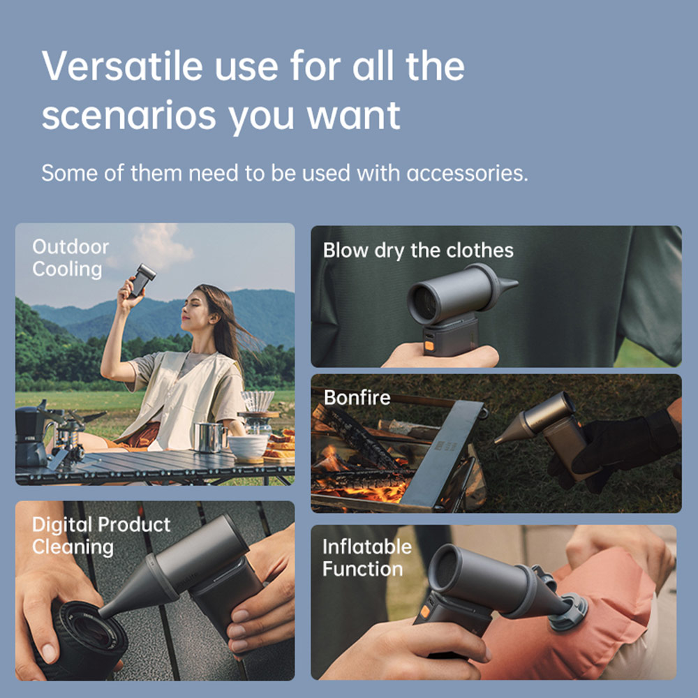 • Multifunctional Design: Apart from being a handheld fan, it comes with three multifunctional accessories to meet various usage scenarios. Additionally, it has a built-in LED light for emergency illumination.
