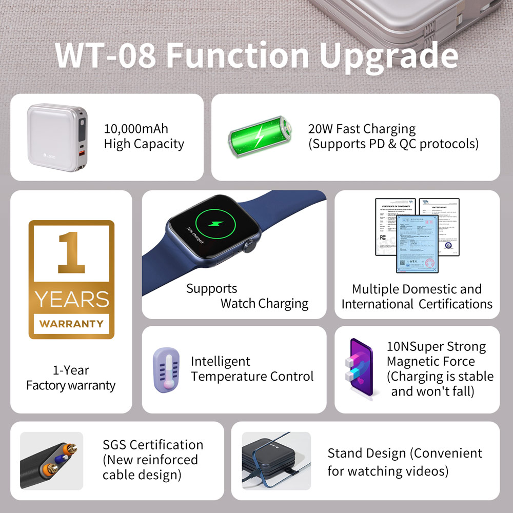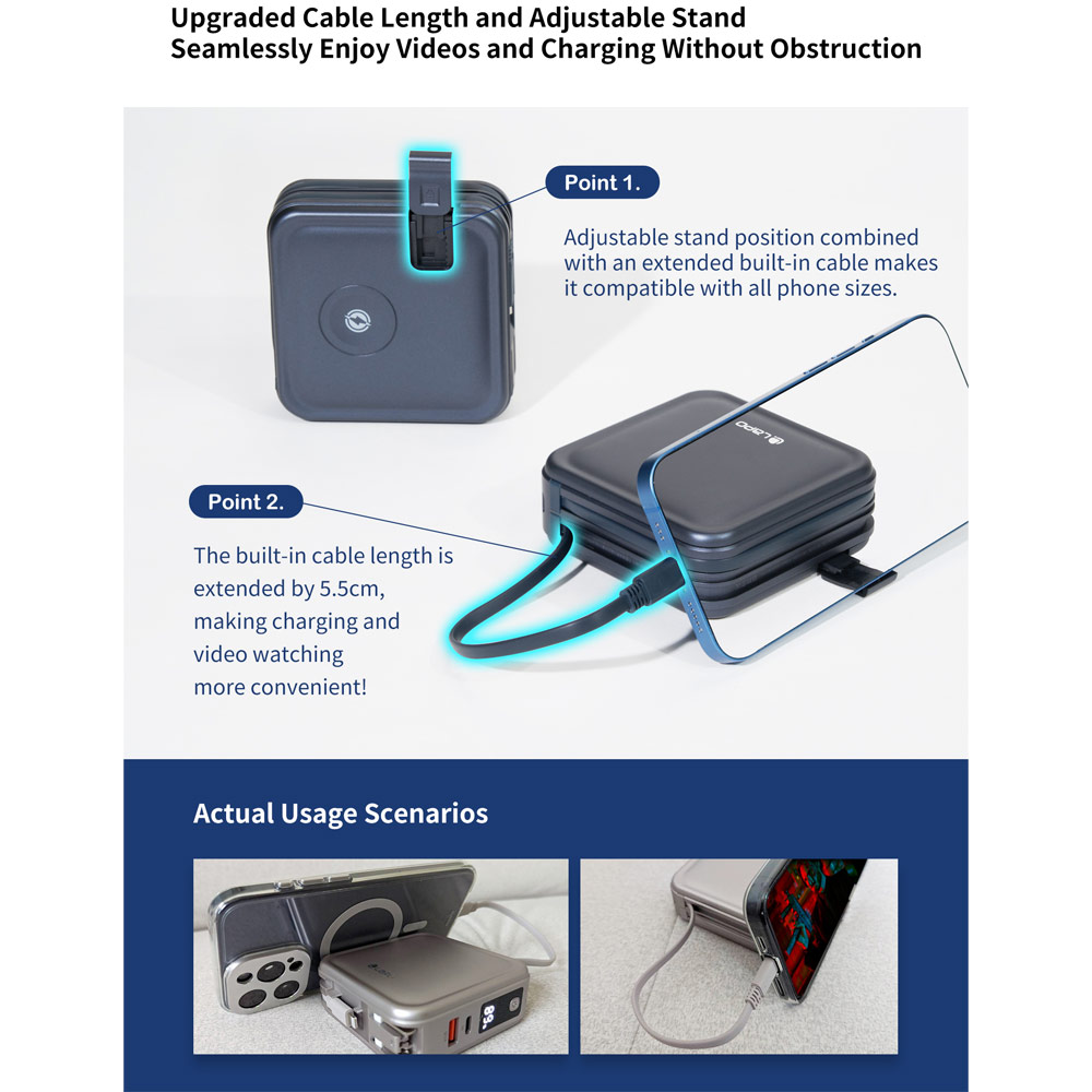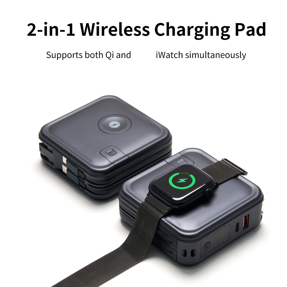 - 2 Built-in Cables + 2 Charging Ports + 1 Wireless Charging Pad **Can Charge 5 Devices
