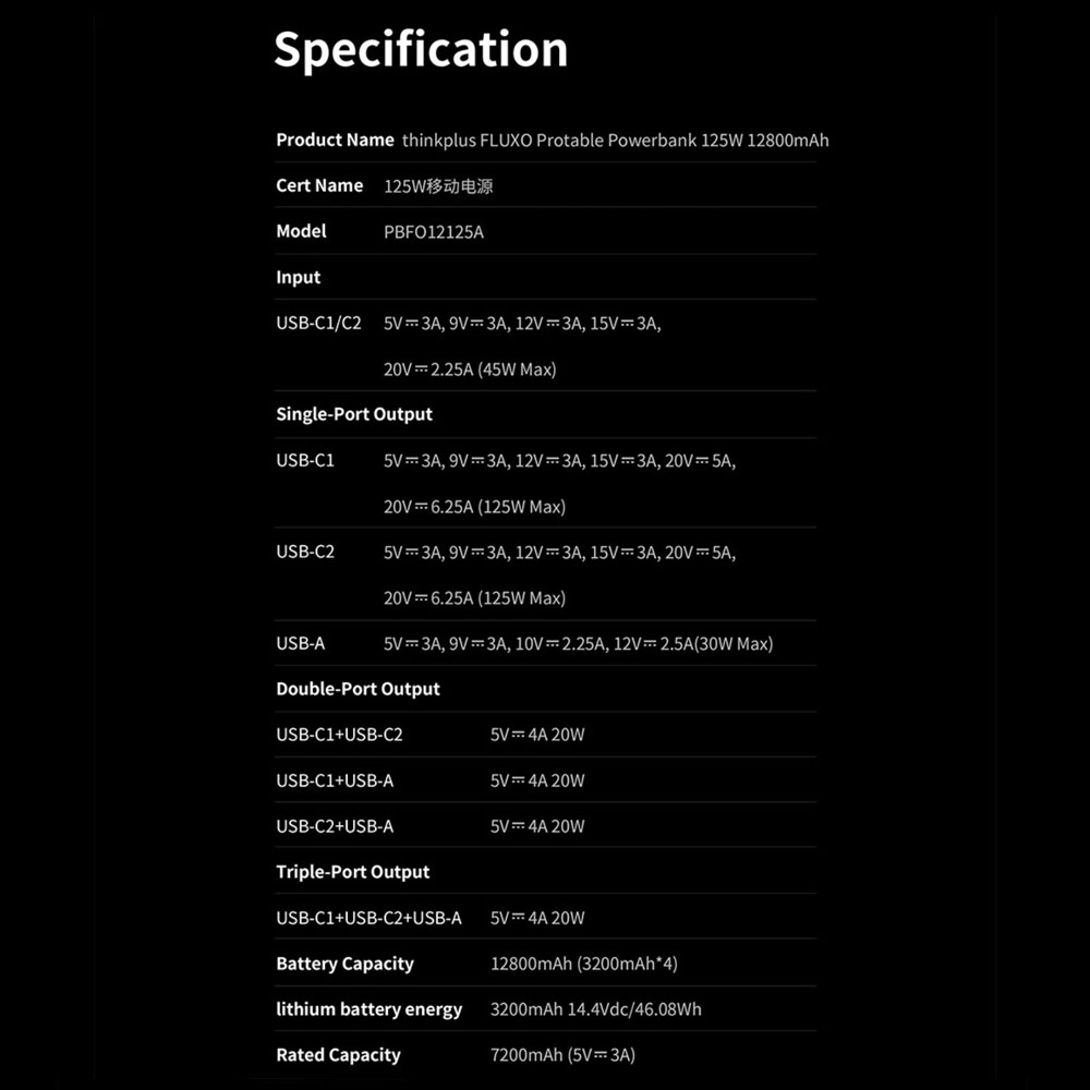 - Thinkplus FLUXO 125W 12800mAh Power Bank