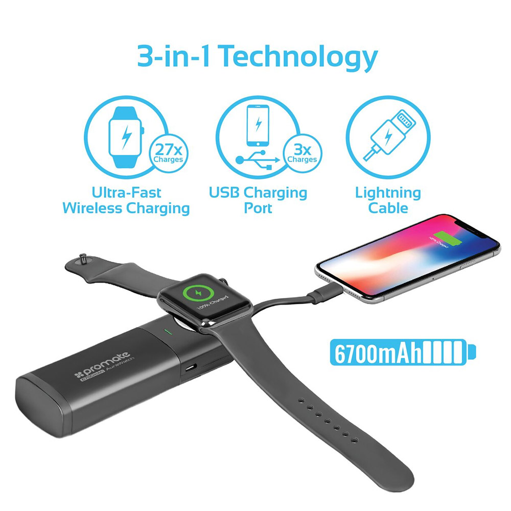 - 2-in-1 Technology: This Qi battery charger is a combination of fast wireless charger for the Apple Watch and a portable power bank