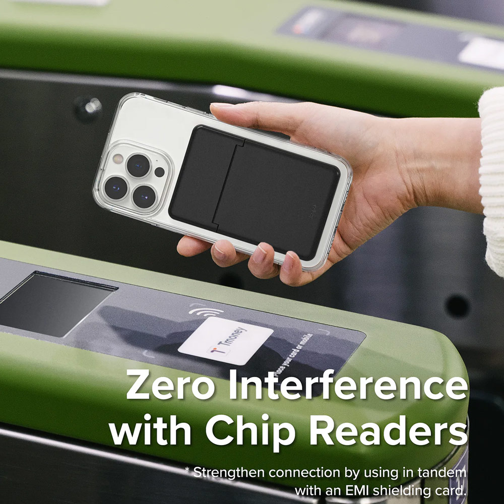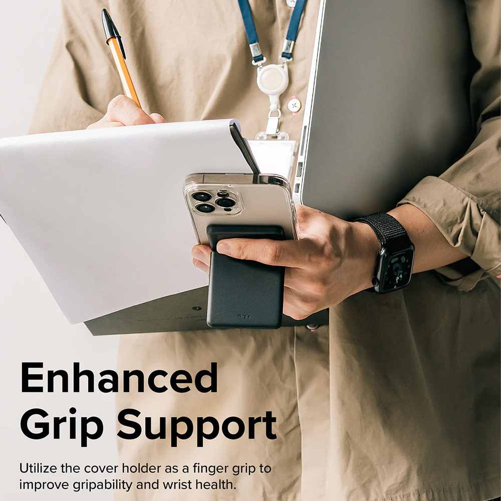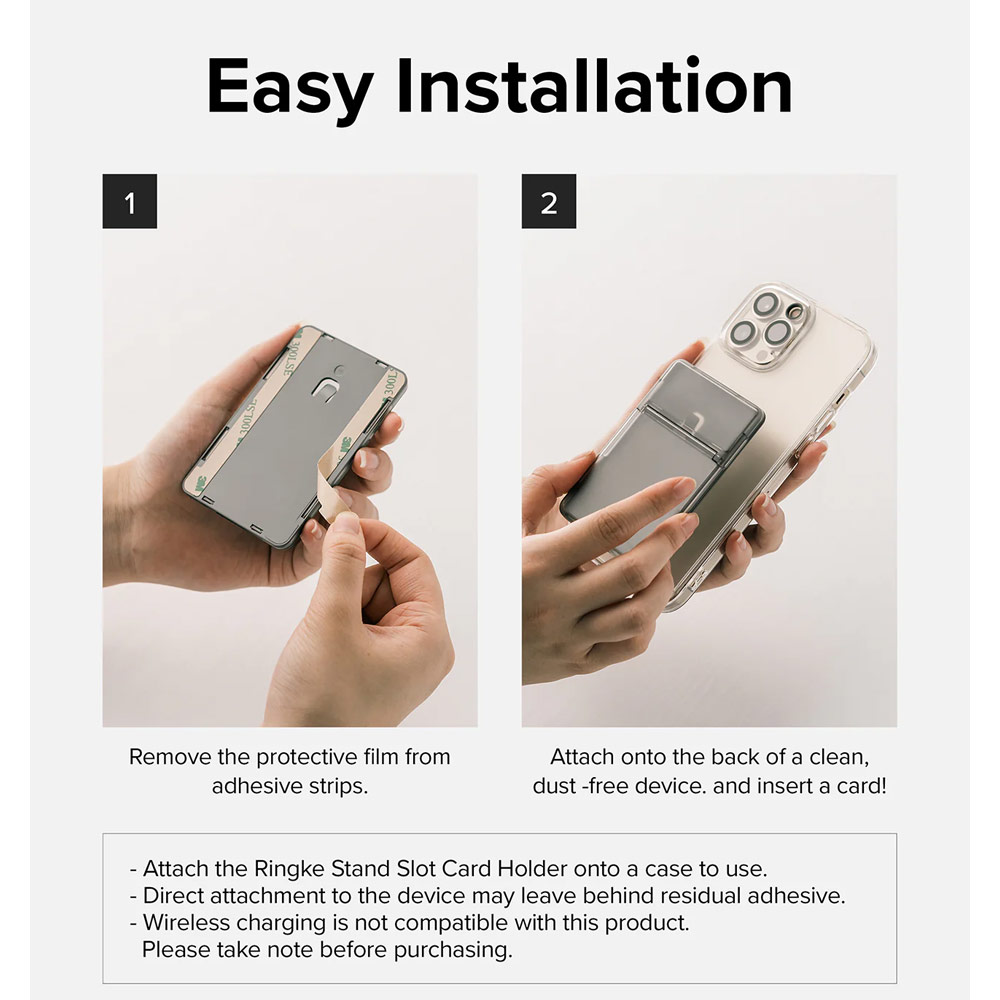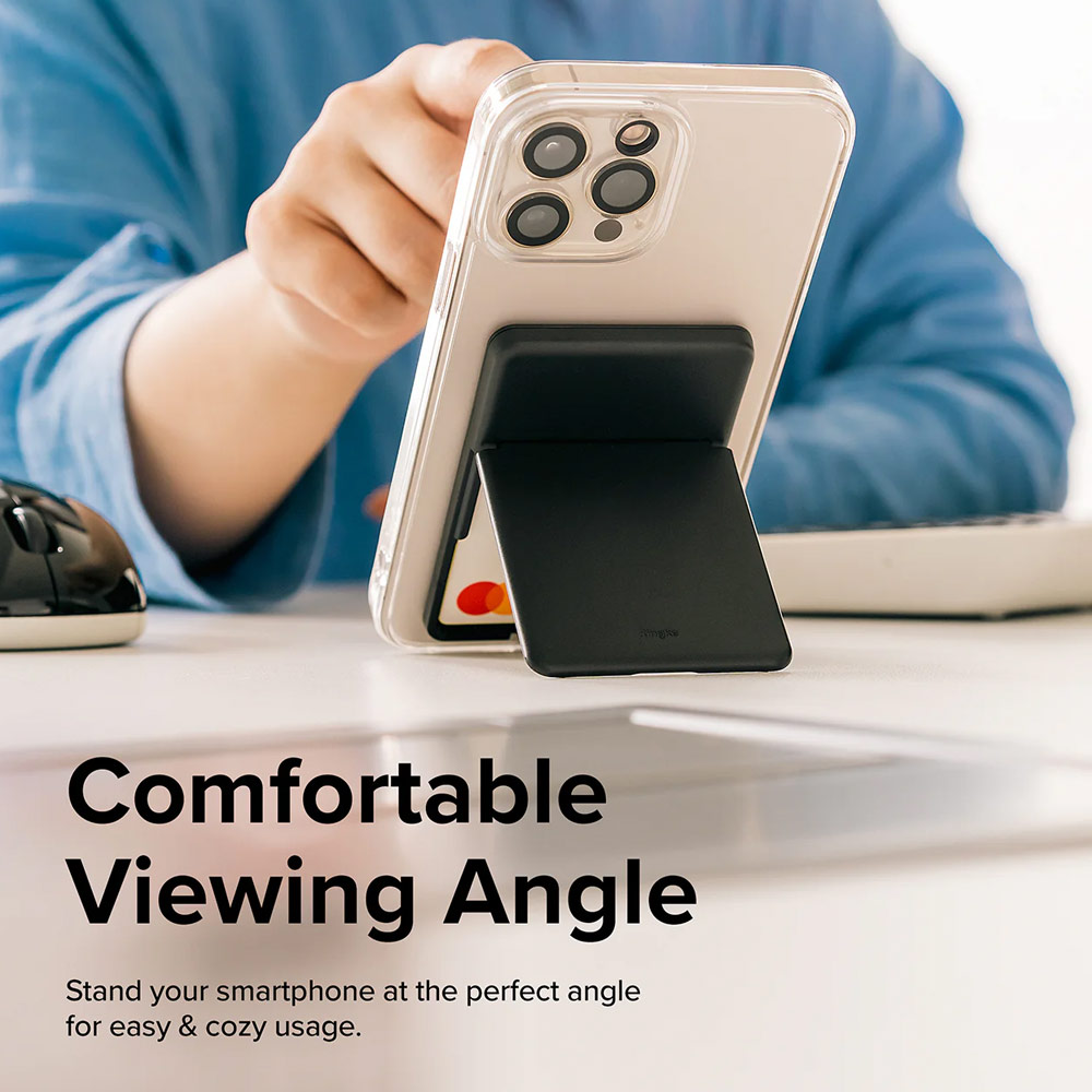 Ringke 2 in 1 Adhesive Card Holder Stand Slot Kickstand with High Quality PC Material for Smartphone (Black)