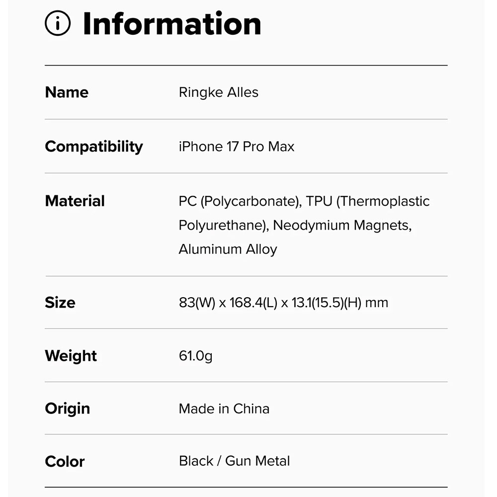 SKU: ringke_alles_17pro_black_8800328811218 Categories: ,