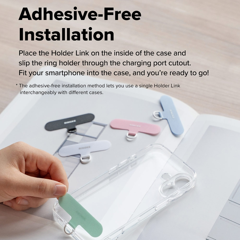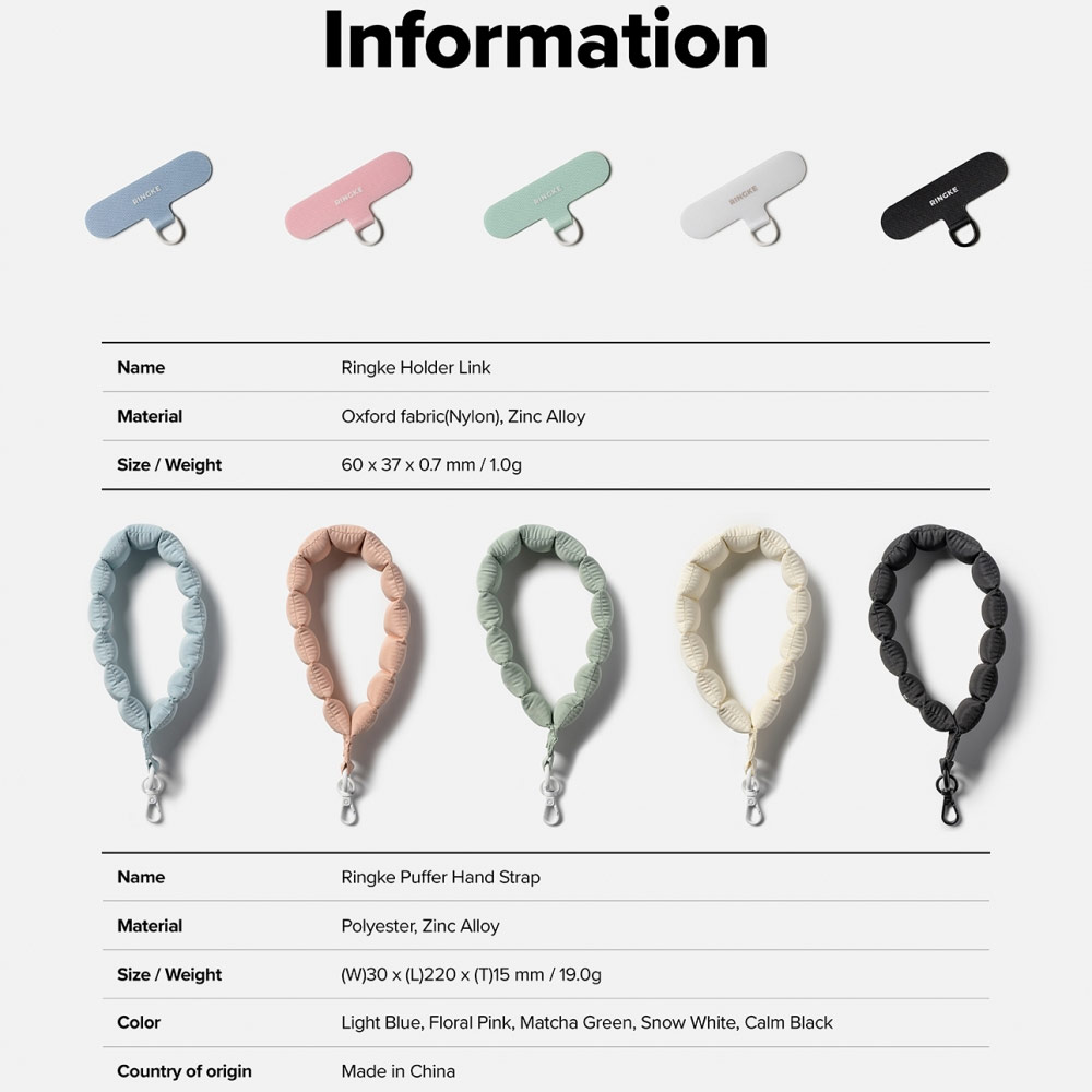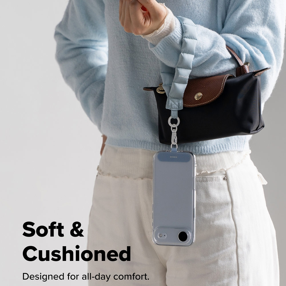 Ringke Eye Catching Holder Link & Puffer Hand Strap for Phone case (Light Blue)