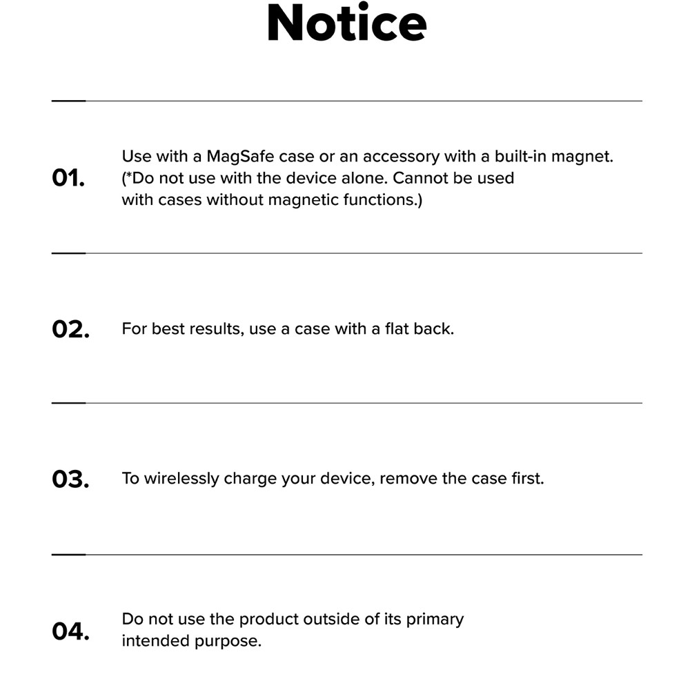 • Must be used with a standard MgSafe case with a flat back (MgSafe case not included)