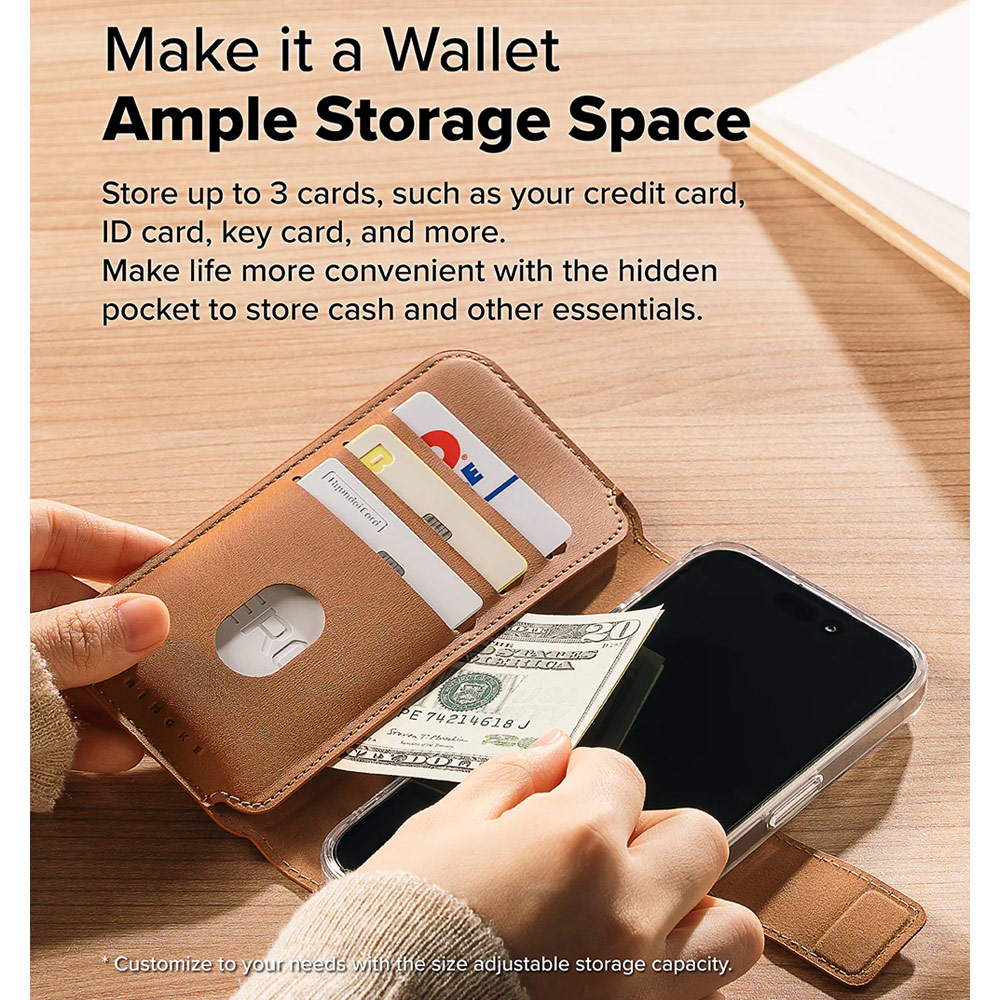 Ringke Folio Wallet Magnetic Flip Cover Card Holder for iPhone 16 Pro Max iPhone 16 Plus (Brown)