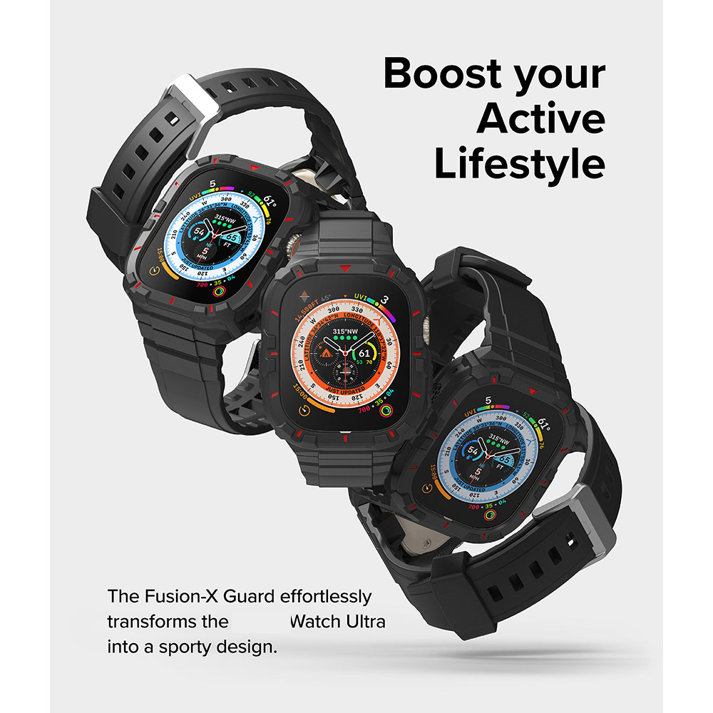 Ringke Fusion X Guard Protection Case Strap Band for Apple Watch Ultra 49mm (Black Red Index)