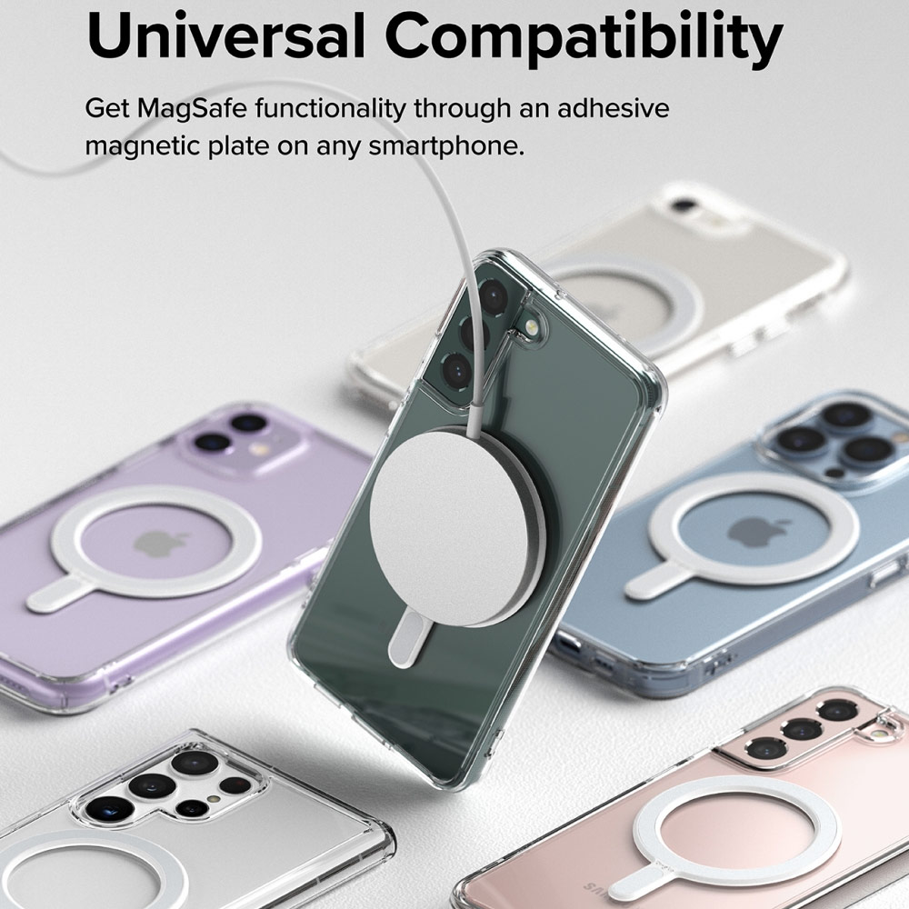- Universally compatible magnetic ring plate for smartphones to convert a regular case into a MagSafe case