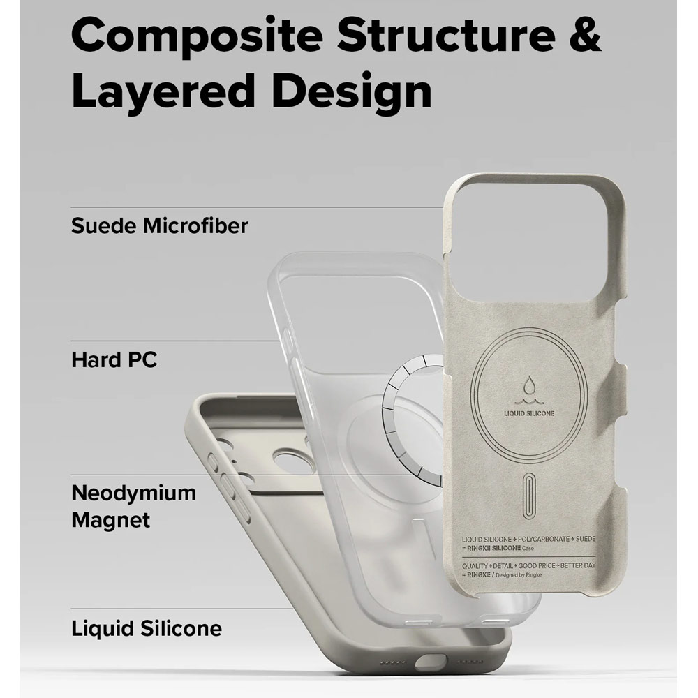 Ringke Silicone Magnetic Soft Liquid Silicone Drop Protection Case with Camera Control Button for iPhone 17 Pro 6.3 (Stone)