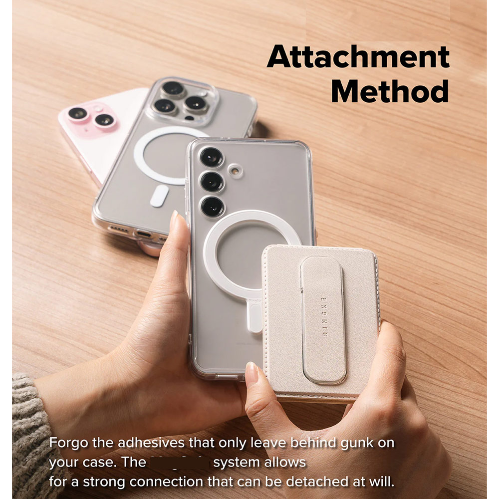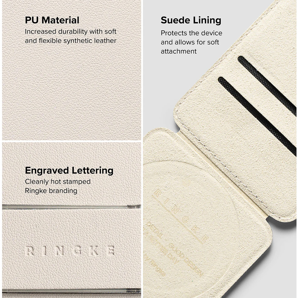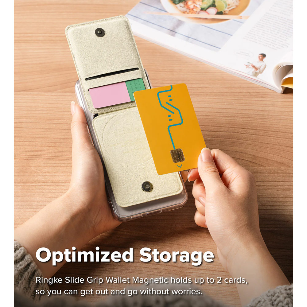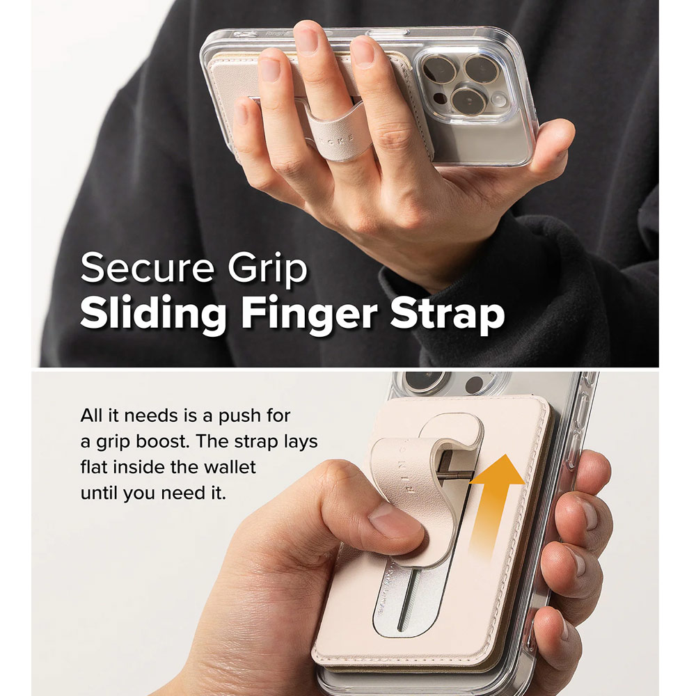 Ringke Slide Grip PU Wallet Magnetic for iPhone 15 iPhone 16 Pro Max Card Holder Phone Stand (Beige Pink)