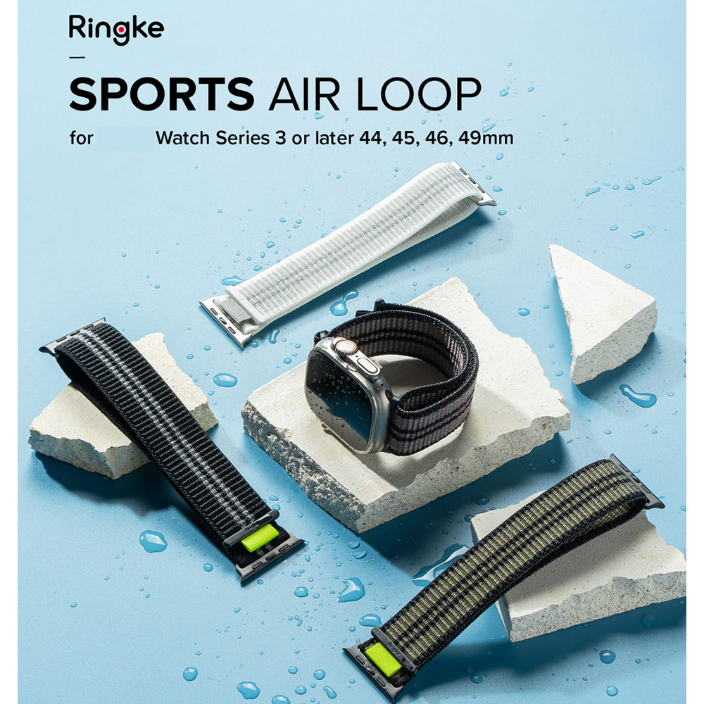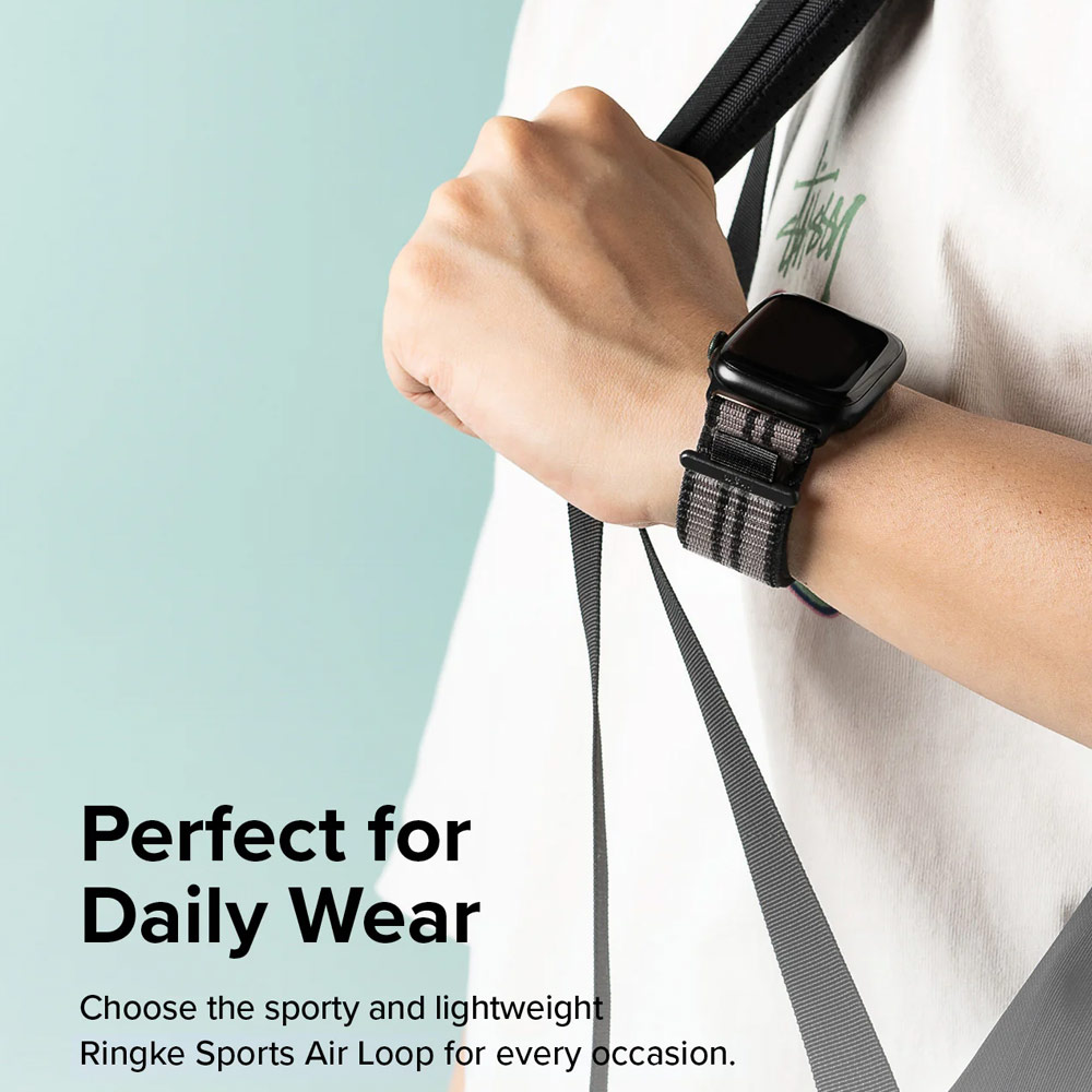 Ringke Sports Air Loop Breathable Woven Nylon Soft Weave Strap for Apple Watch Series 4 5 6 8 9 10 42mm 44mm 45mm 46mm 49mm Ultra (ECLIPSE GRAY)