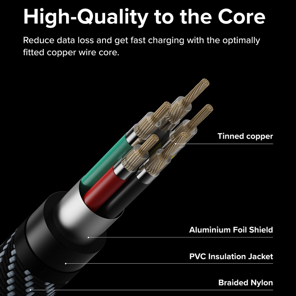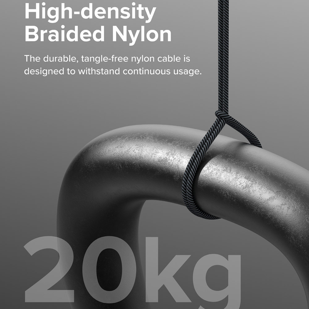 • High density braided Nylon , durable, tangle free nylon cable