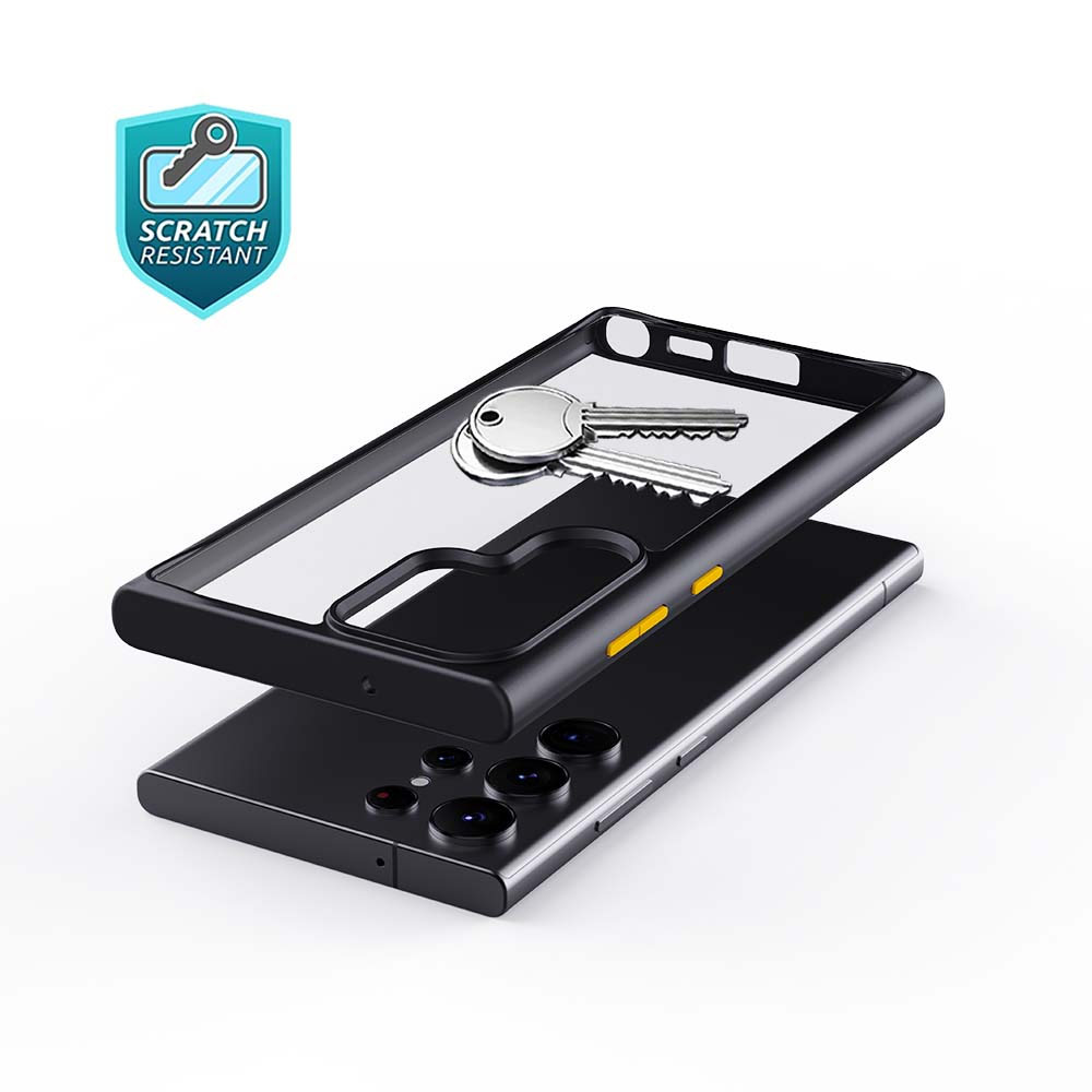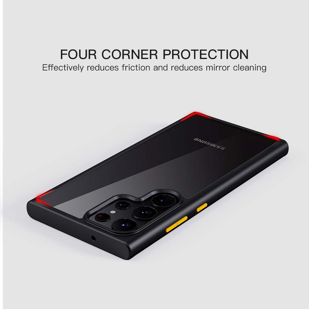 - Shock-absorbing TPU + high elastic TPE protects phone from impacts.