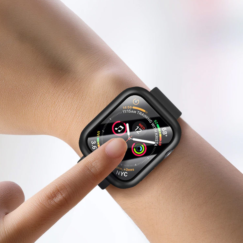 Rock Integrated Case with High Sensitivity Touch 9H Tempered Glass for Apple Watch 45mm (Black)