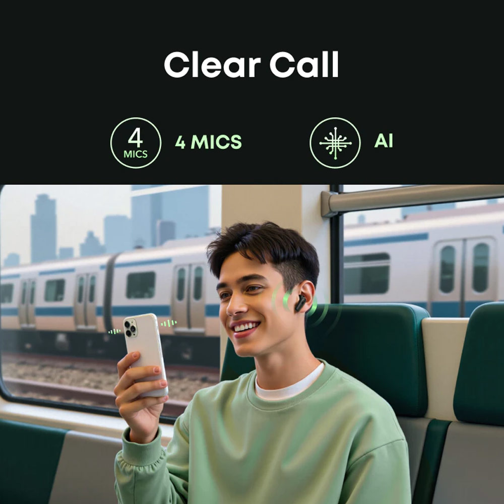 • 4 microphones + custom Al algorithm for enhanced calls.