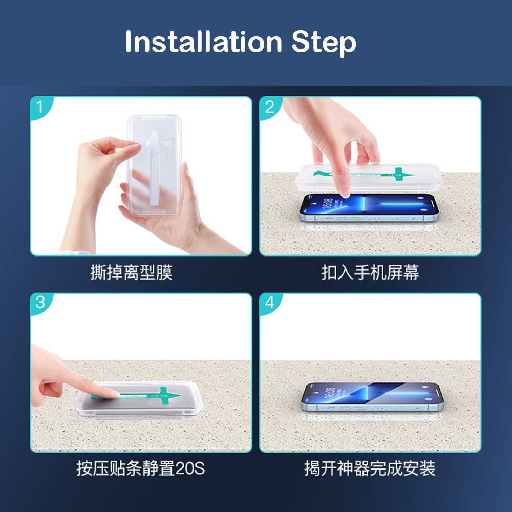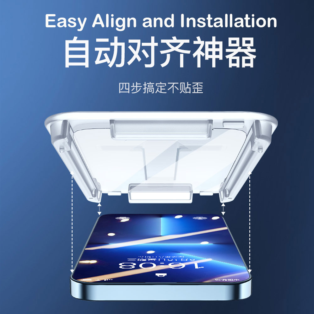 Totu Full Coverage Tempered Glass with Easy Installation Tools with Dust Filter for iPhone 13 Pro Max 6.7 (Clear)