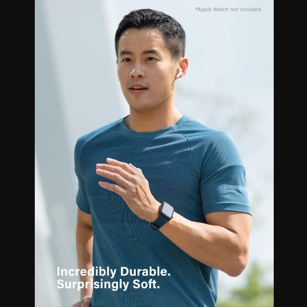 A waterproof strap with a breathable and lightweight design for urban and outdoor activities. Its innovative AiroSoft™ finish feels surprisingly soft and sits comfortably on your wrist. Made from flexible silicone with grooves on the underside for addedventilation during intense workouts. Adjustable fit with 304 stainless steel hardware.