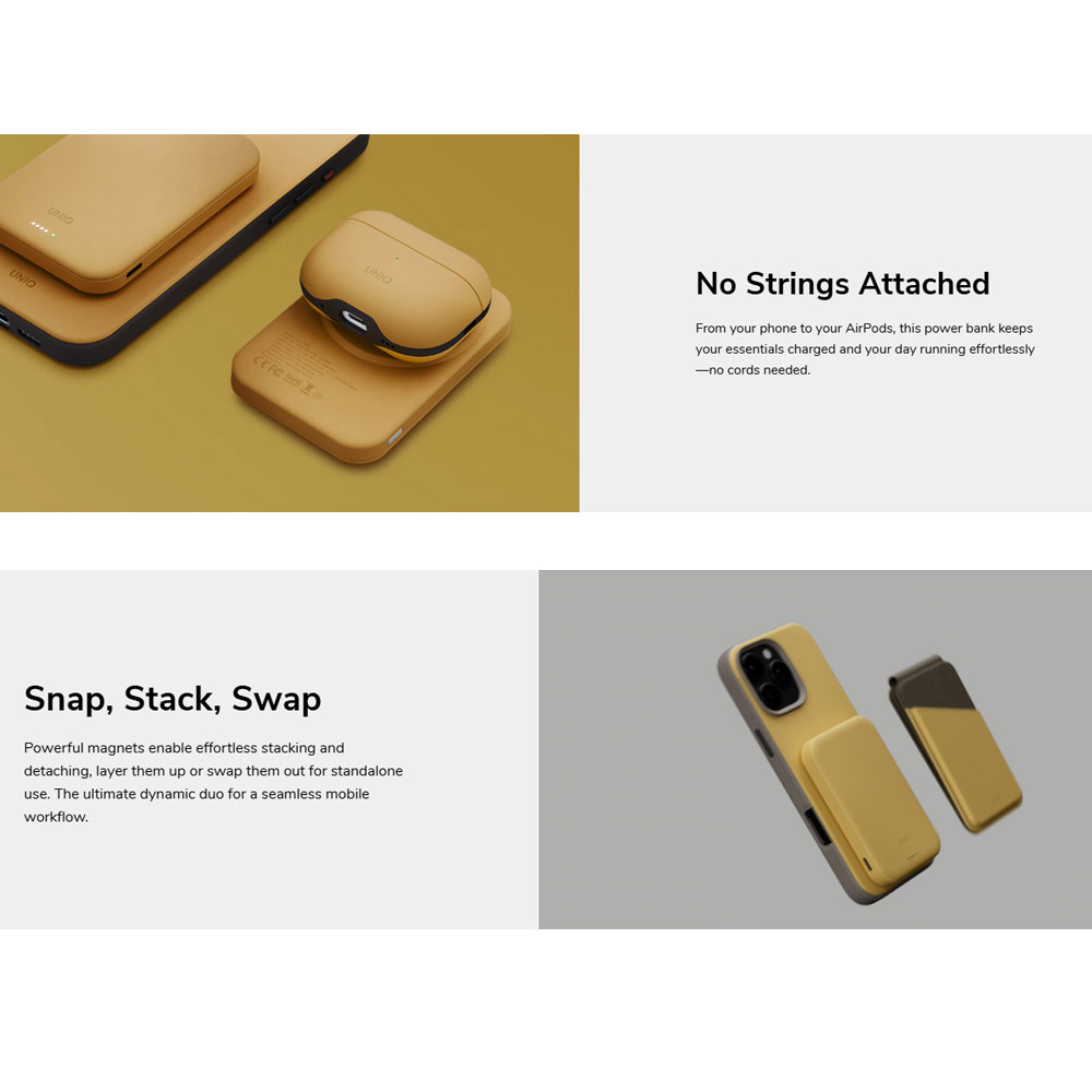The double-sided magnetic surface pairs effortlessly with MagClick™ accessories like UNIQ’s cardholders and GripFit, offering hands-free viewing while charging