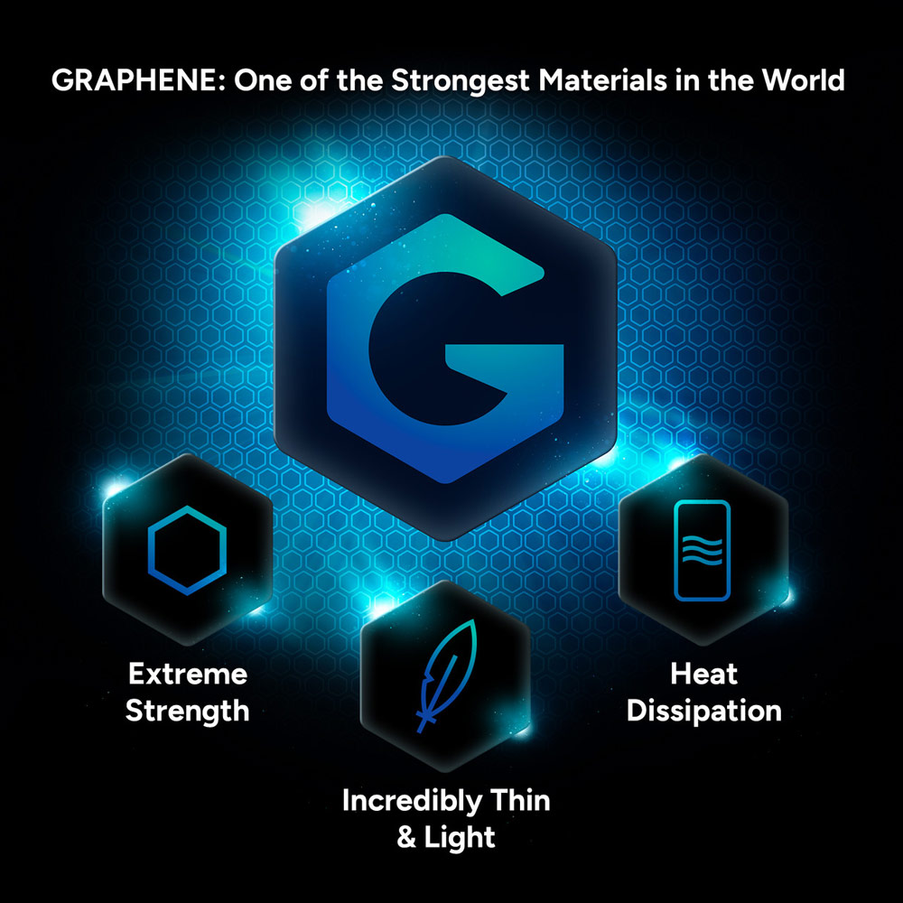 • Strengthened with Graphene: Graphene is harder than diamond, yet more elastic than rubber, and it’s 200x stronger than steel.2